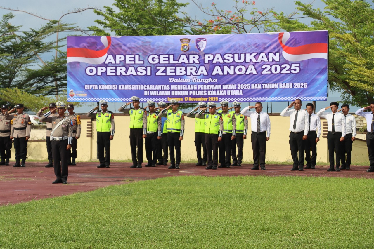 Kolaka Utara, Siaran Publik- Operasi Zebra Anoa 2025 resmi dimulai di wilayah hukum Polres Kolaka Utara (Kolut), Senin (17/11), ditandai dengan Apel Gelar Pasukan yang berlangsung di halaman Mapolres Kolut pada pukul 08.00 Wita. Wakapolres, Kompol Ilham, bertindak sebagai pimpinan apel.