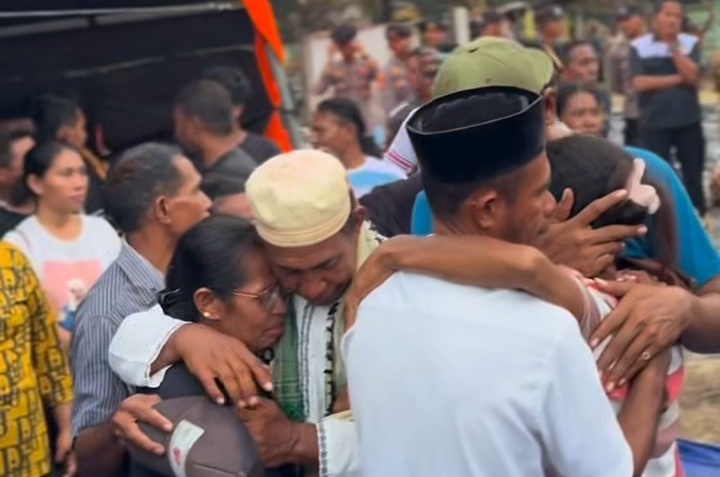 SIARANPUBLIK.COM-Suasana haru menyelimuti proses perdamaian antara warga Desa Sibenpopo dan Desa Banemo, Kecamatan Patani Barat, Kabupaten Halmahera Tengah, Selasa (7/4/2026). Tangis warga pecah saat kedua belah pihak yang sebelumnya terlibat konflik akhirnya saling mendekat, berjabat tangan, hingga berpelukan.