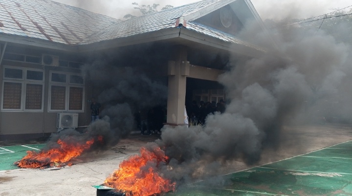 Akibatnya, massa meluapkan emosi dengan merobohkan pagar besi, memecahkan empat jendela kaca, serta mencoret dinding dan pagar kantor. Sejumlah piagam penghargaan yang terpajang di ruang utama juga dicopot, dirusak, dan dibakar.