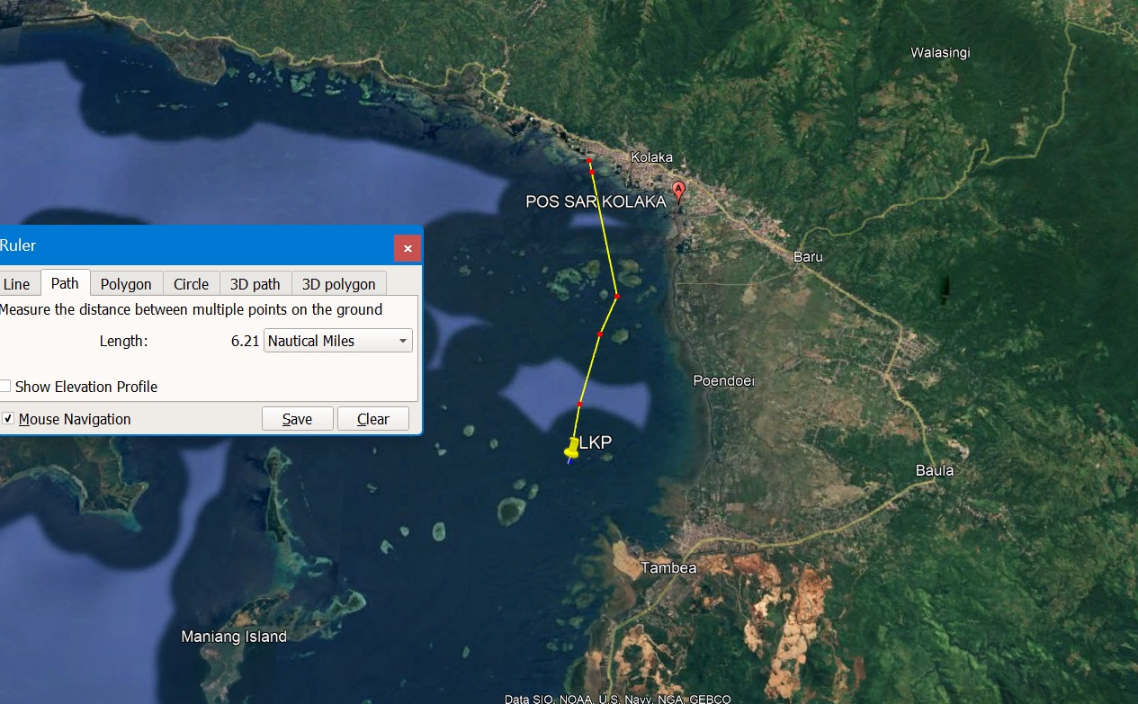 Berdasarkan laporan itu, pukul 17.45 Wita Tim Rescue Pos SAR Kolaka langsung diberangkatkan menuju lokasi kejadian dengan menggunakan Rescue Car dan Rigid Inflatable Boat (RIB). Jarak antara Pos SAR Kolaka dan lokasi kejadian sekitar 6,21 mil laut atau sekitar 11,5 kilometer.