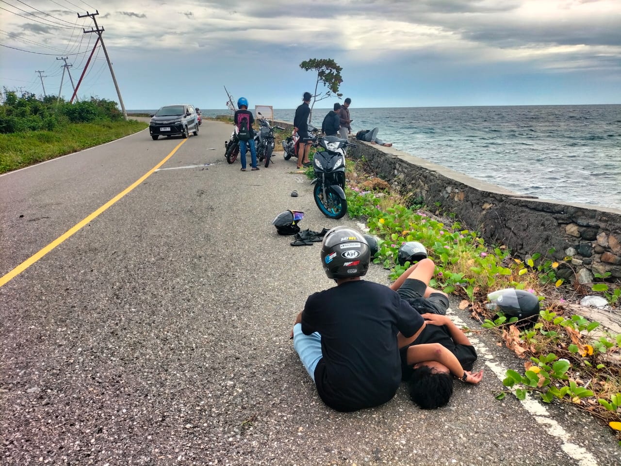 Peristiwa tersebut terjadi pada Minggu sore sekitar pukul 15.14 Wita. Seorang pengendara sepeda motor Yamaha berwarna hitam tanpa nomor polisi terjatuh saat melintas dari arah selatan menuju utara. Korban diduga kehilangan kendali ketika berusaha menghindari lubang besar di badan jalan yang jebol akibat terjangan ombak laut.