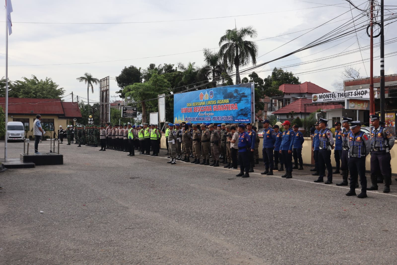 Kapolres Kolaka AKBP Yudha Widyatama Nugraha, SIK menyampaikan bahwa doa bersama ini bertujuan menyatukan hati dan kepedulian seluruh elemen masyarakat terhadap saudara-saudara yang sedang mengalami musibah.