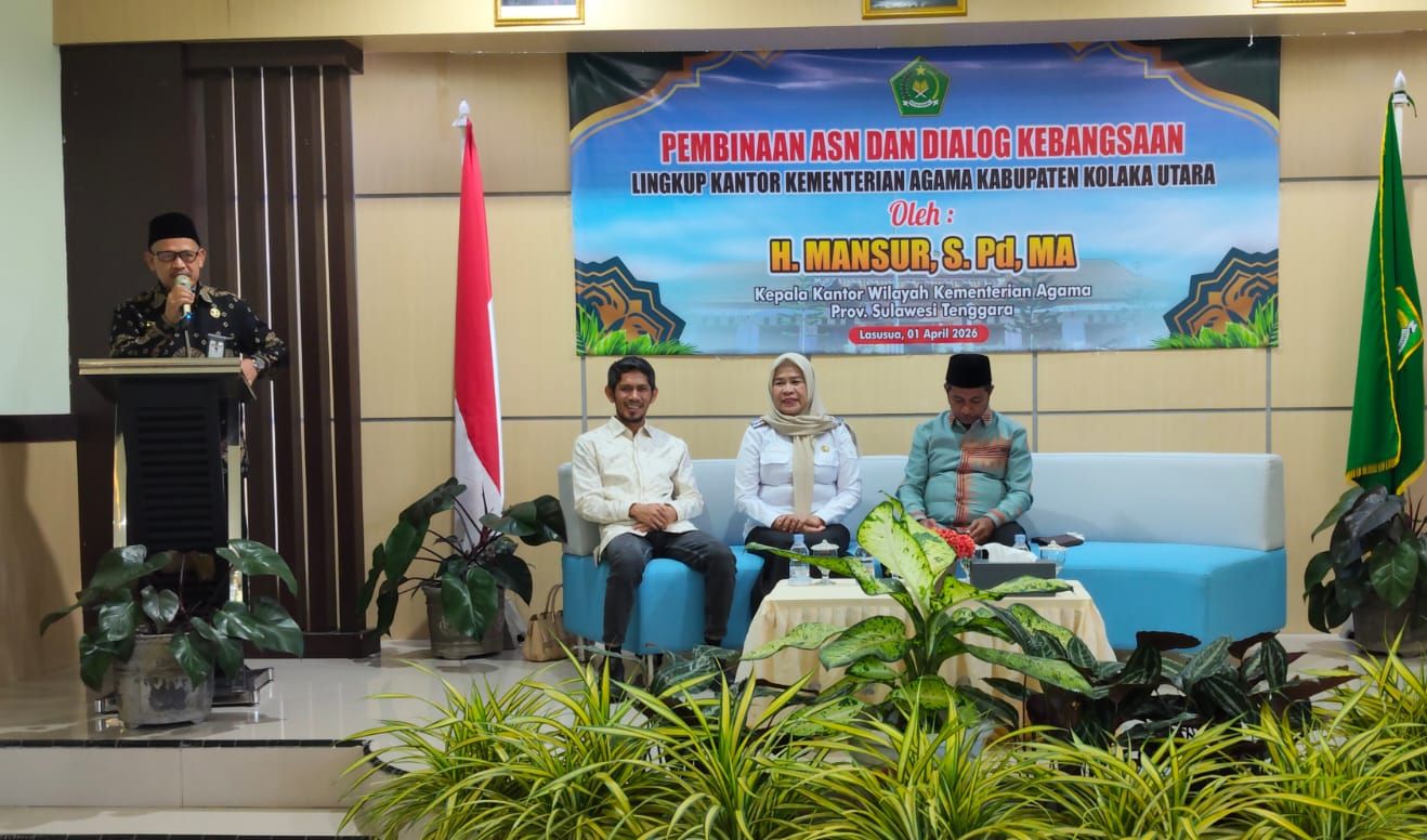 KOLAKA UTARA, SIARANPUBLIK.COM – Kepala Kantor Wilayah (Kanwil) Kementerian Agama (Kemenag) Sulawesi Tenggara, H. Mansur, melakukan kunjungan kerja (kunker) ke Kabupaten Kolaka Utara usai libur panjang Idulfitri 1447 Hijriah, Rabu (1/4/2026). Kunjungan tersebut diisi dengan pembinaan Aparatur Sipil Negara (ASN) serta peninjauan sejumlah madrasah.