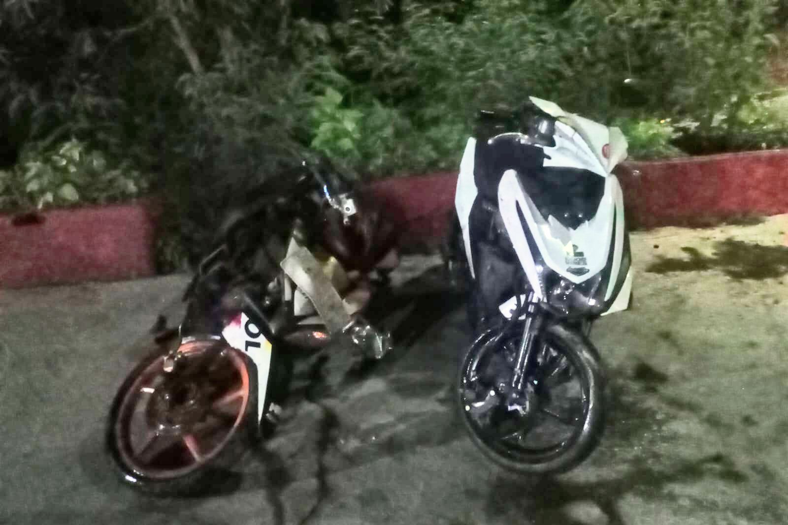 Selain korban luka, kedua sepeda motor juga mengalami kerusakan akibat benturan keras.