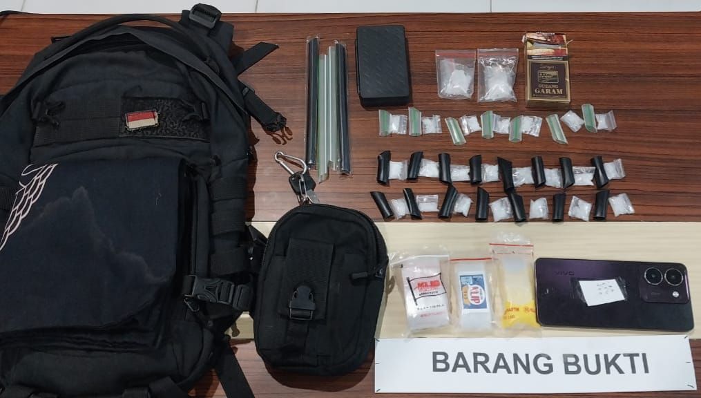 Selain itu, turut diamankan barang bukti non-narkotika berupa satu timbangan digital, tiga ball plastik klip bening kosong, empat pipet, satu dompet, satu kantong kain, serta satu unit sepeda motor Honda CRF warna putih.