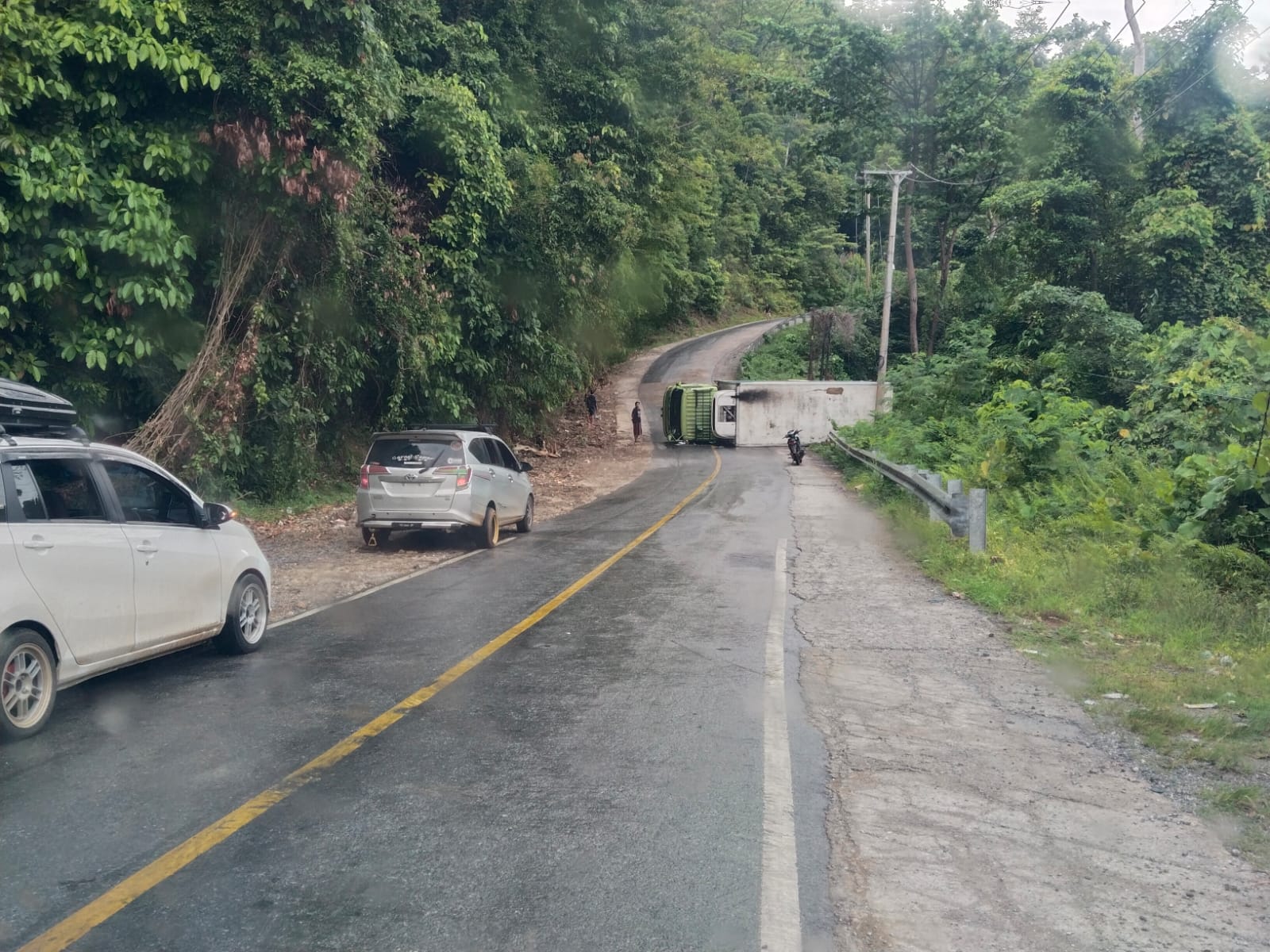 Selain itu, kondisi jalan yang licin akibat tumpahan minyak kelapa sawit (CPO) turut memperparah situasi. Minyak yang tumpah di permukaan jalan membuat kendaraan harus melintas dengan ekstra hati-hati.